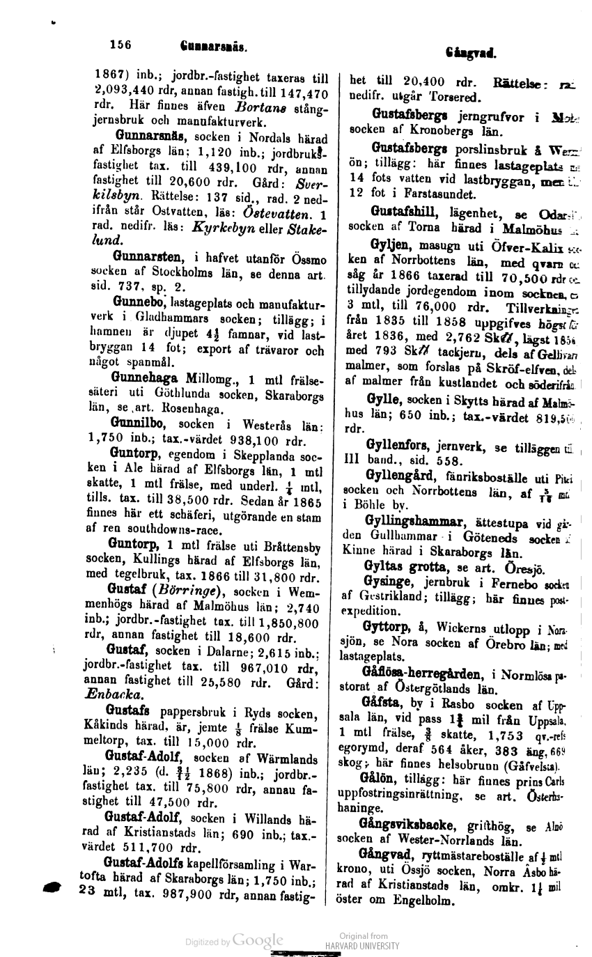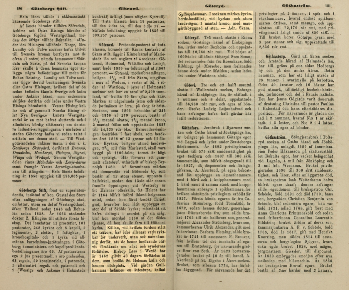 (Historiskt-geografiskt och statistiskt lexikon öfver Sverige, Tredje Bandet, G-H, Stockholm, 1862, s.180, 181)