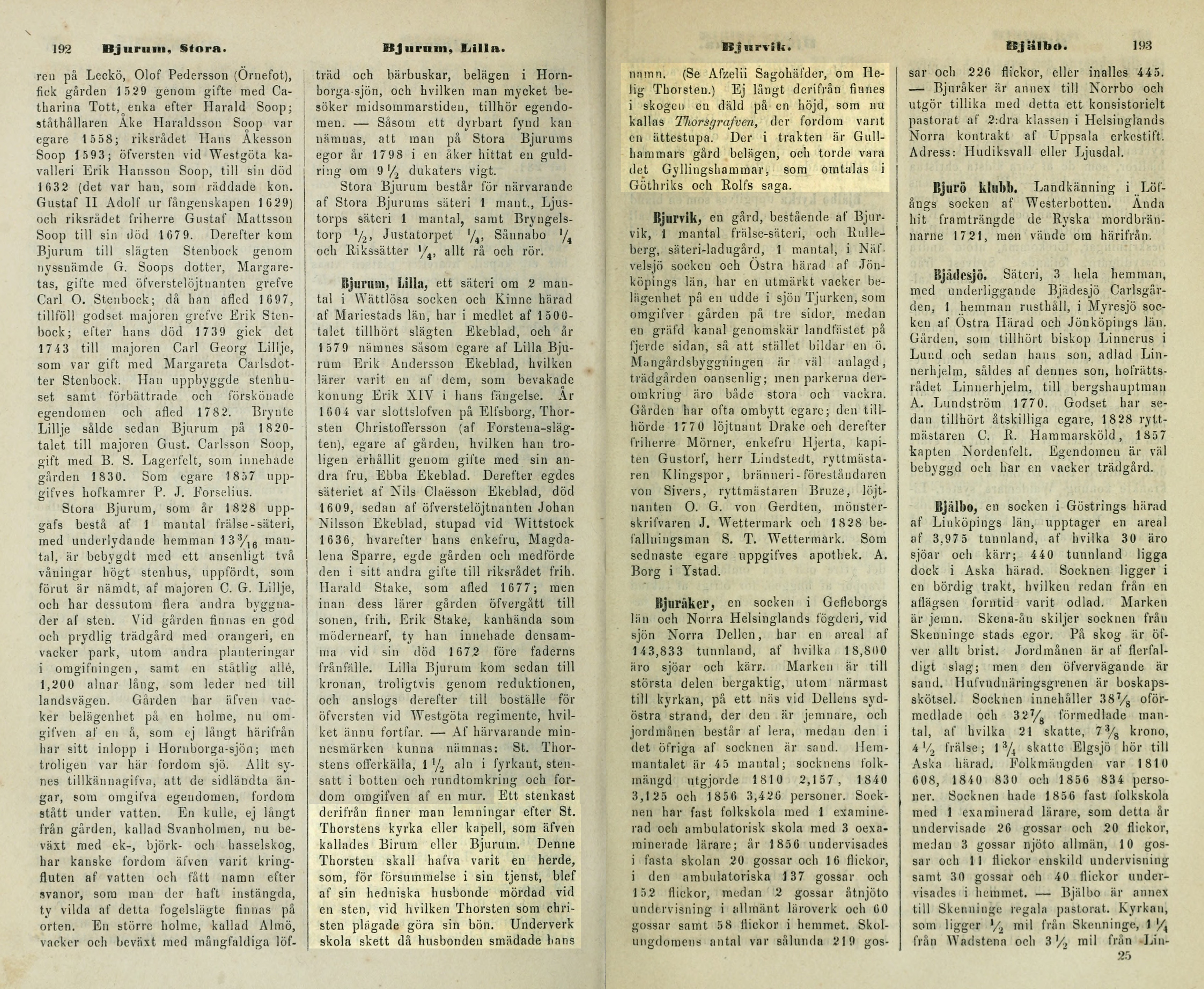 (Historiskt-geografiskt och statistiskt lexikon öfver Sverige / Första Bandet. Inledning samt Text A och B, 1859-1870, s. 192 – 193)