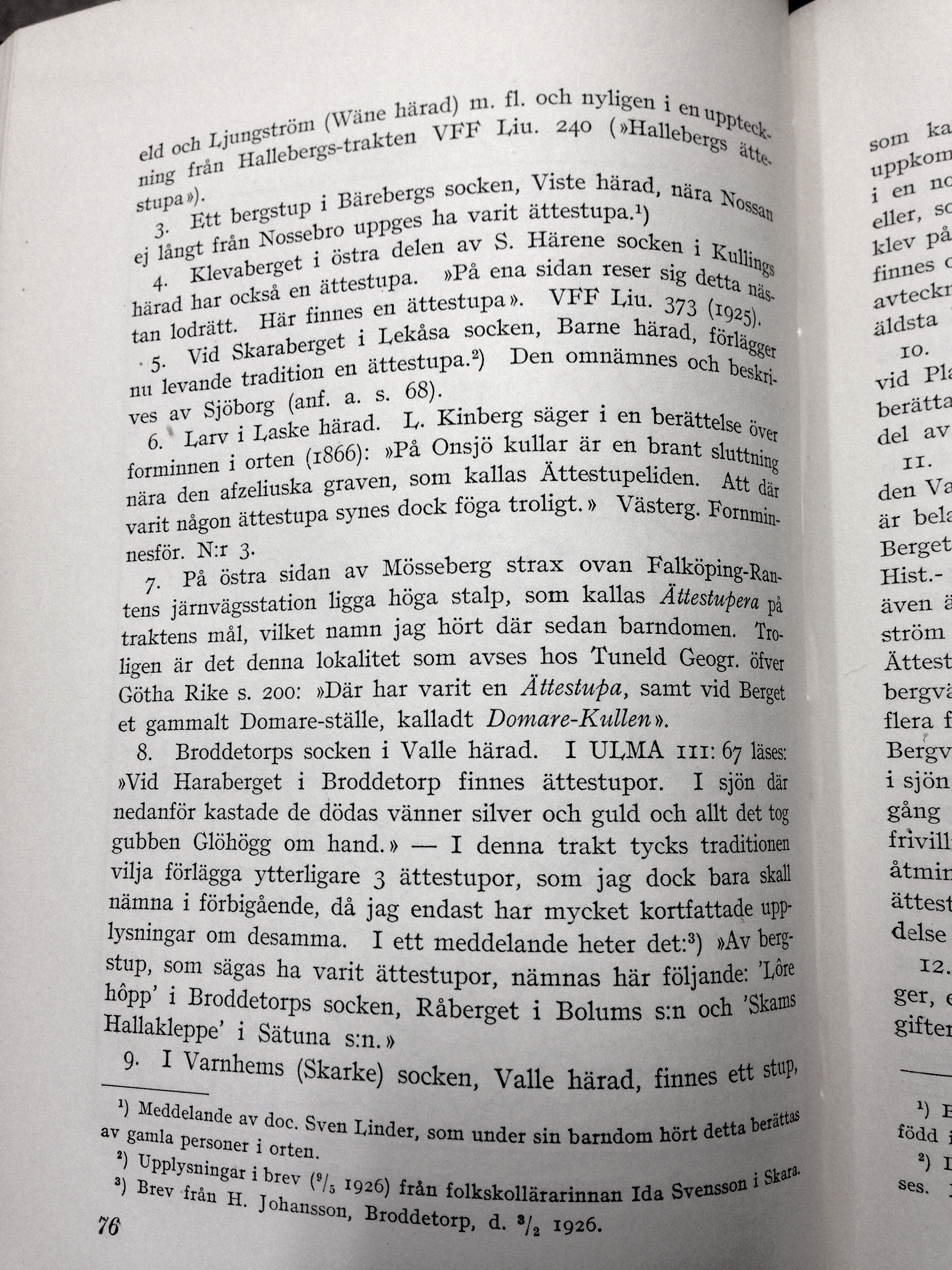 (”Valhall och ättestupa i västgötsk tradition” av Johan Götlind, s. 74-76 / Folkloristiska Studier och Samlingar 2 / Folkminnes-Studier tillägnade hilding celander den 17 juli 1926)