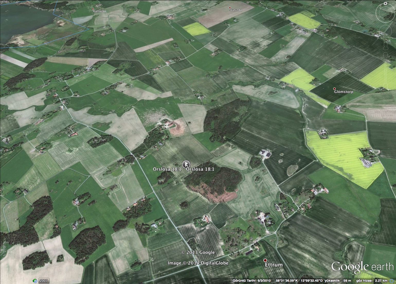 ”I åker NV om ”Ättestupan”, en förkastningsbrant ca 50 m SÖ om åkerkant.