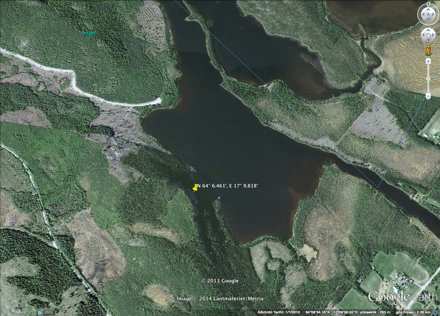 Sörnoret tills allmän väg slutar – ca 12 km – fortsätt en bit till