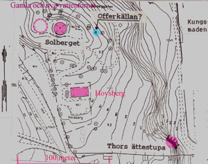 ”Hofs-Lund, Norr om Staden, är med högstammige löftran, i sinnerhet Ek och Bok, hårligen beprydd; midt i lunden är en kulle, såsom en Ätteplats. På denna sidan ligger ock Solberget, hwarpå är en Ättestupa, kallad Dödssprång.”