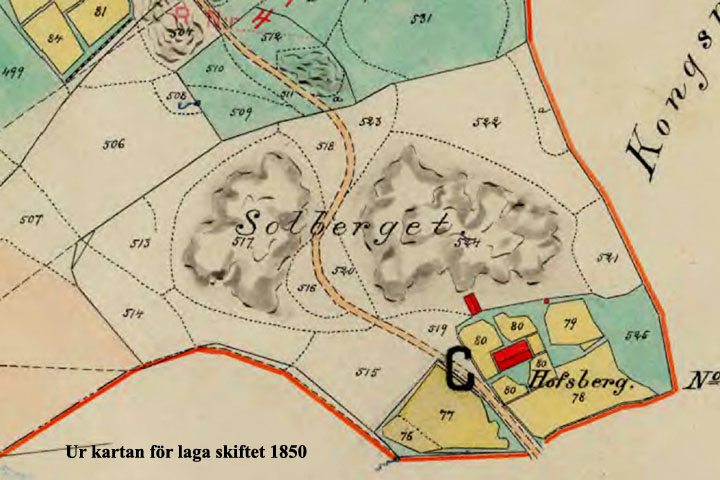 Solberget på karta 1850